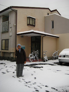 Alhamdulillah, hari ini merupakan hari kedua salji turn dengan lebatnya di sini. Walaupun sudah biasa bermain dengan salji ketika di Yamagata dan Nagano suatu ketika dahulu, namun bila dapat menikmati salji di tempat sendiri, memang terasa lain keseronokannya. Bahkan, benarlah kata pepatah, "..lebih baik hujan batu di tempat sendiri " :P.